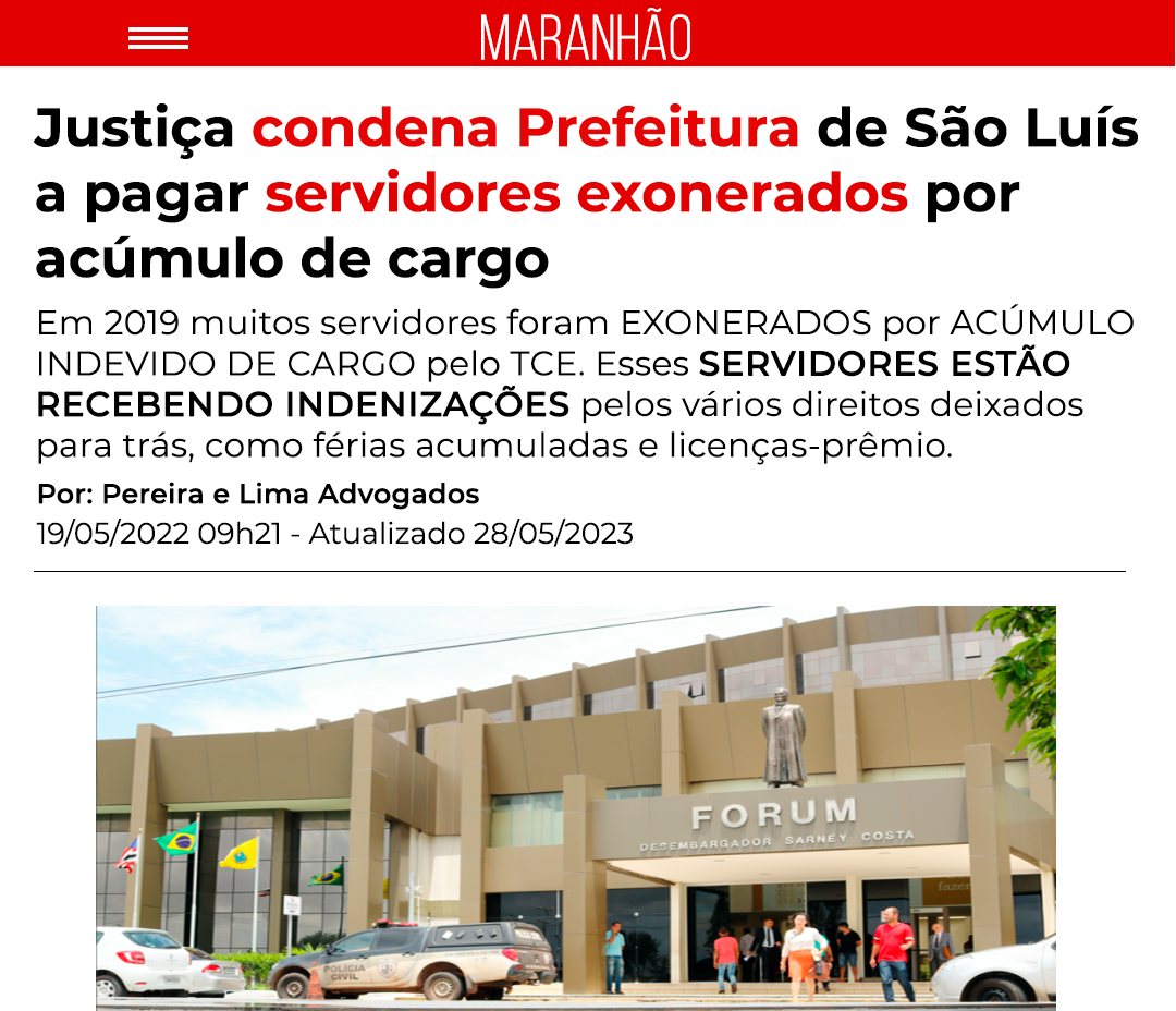 Vítima da intimação do Tribunal de Contas do Estado -TCE para fazer opção de cargos, a ex- servidora será indenizada em R$ 47.361,93 após condenação da prefeitura de São Luís em razão dos direitos não gozados pela servidora durante os vários anos de trabalho.